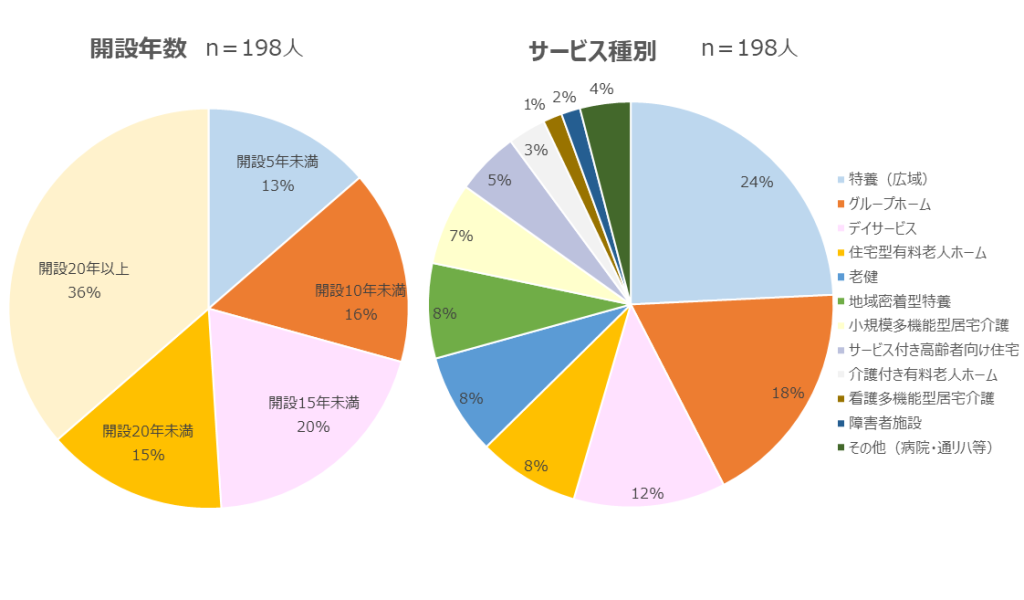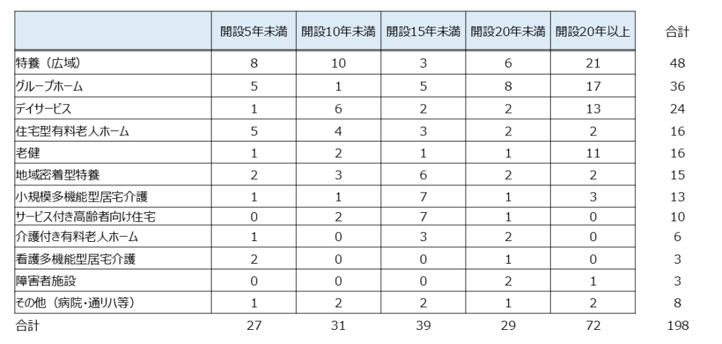 - 特養(広域)・グループホームの約半数が「開設20年以上」 特養(広域)43.8%・グループホーム47.2%