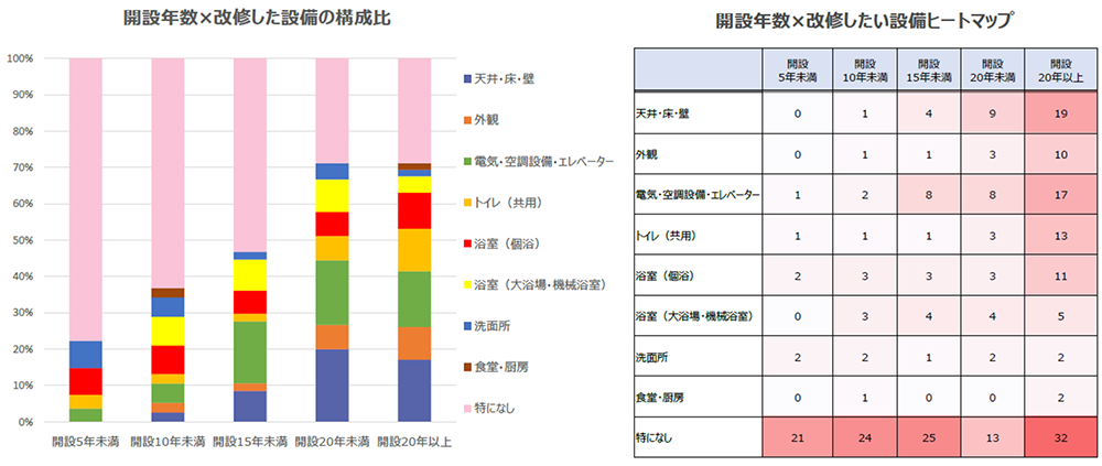- 「浴室(個浴)」は全年数帯で一定の構成比があり、継続的な改善ニーズが存在